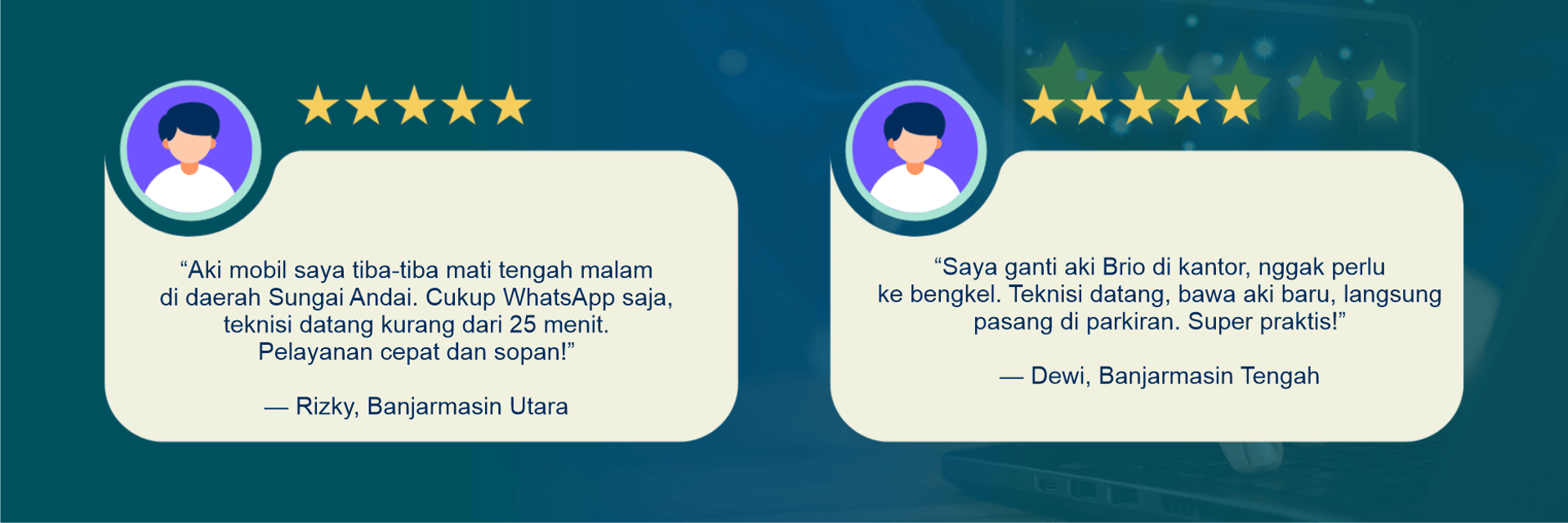 Kami pastikan aki yang dikirim dalam kondisi prima dan berkualitas. Jaminan cepat dan teknisi profesional, pengiriman kurang dari 30 menit aki sudah sampai di lokasi anda.